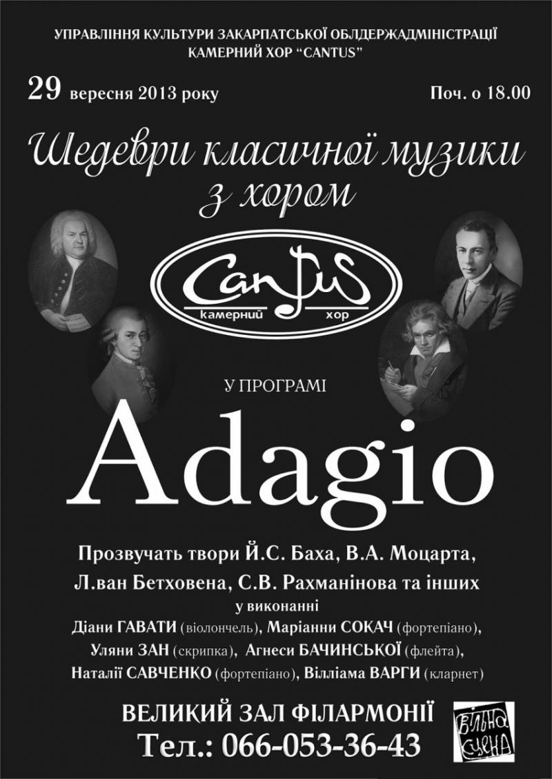 Академічний камерний хор «Кантус» у неділю, 29 вересня, представить ужгородцям програму «Адажіо».