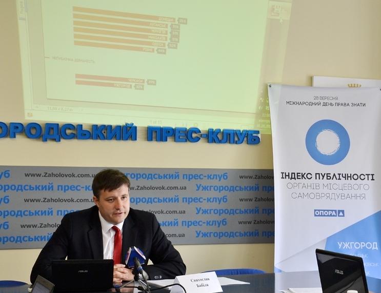 Ужгород має найнижчий індекс публічності (32 %) і перебуває на 11 місці з 11 обласних центрів, де проводилося Всеукраїнське вимірювання Індексу публічності місцевого самоврядування. Результати дослідження презентував координатор проекту ГМ ОПОРА в Закарпатській області Святослав Бабіля під час засідання Ужгородського прес-клубу.