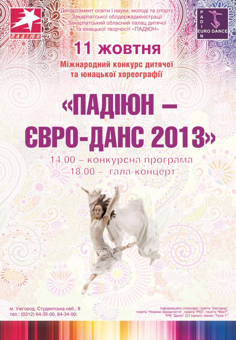 Закарпатський обласний палац дитячої та юнацької творчості запрошує на міжнародний конкурс дитячої та юнацької хореографії «ПАДІЮН – Євро-Данс 2013».