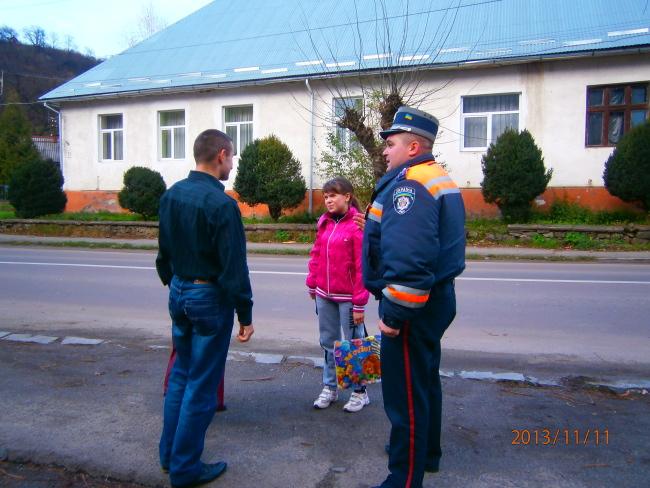 Для цього дві учениці вийшли на тротуар недалеко біля інформаційного знаку «Пішохідний перехід» і разом з інспектором державної автомобільної інспекції Федором Гулейом спостерігали, скільки пішоходів порушать правила і спробують перейти вулицю у невстановленому місці, ігноруючи вимоги даного інформаційного знаку. Так, з молодим чоловіком, який намагався чим швидше перейти дорогу поза пішохідним переходом, було проведено профілактичну бесіду. Його було попереджено про адміністративну відповідальність, яку він може понести за вчинене правопорушення, та роз’яснено, що необачність чи байдуже ставлення до дотримання встановлених правил для пішоходів іноді може вартувати комусь життя.