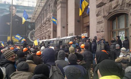 Протестувальники частково розблокували вхід у будівлю столичної мерії після від'їзду автобусів з "беркутівцями".