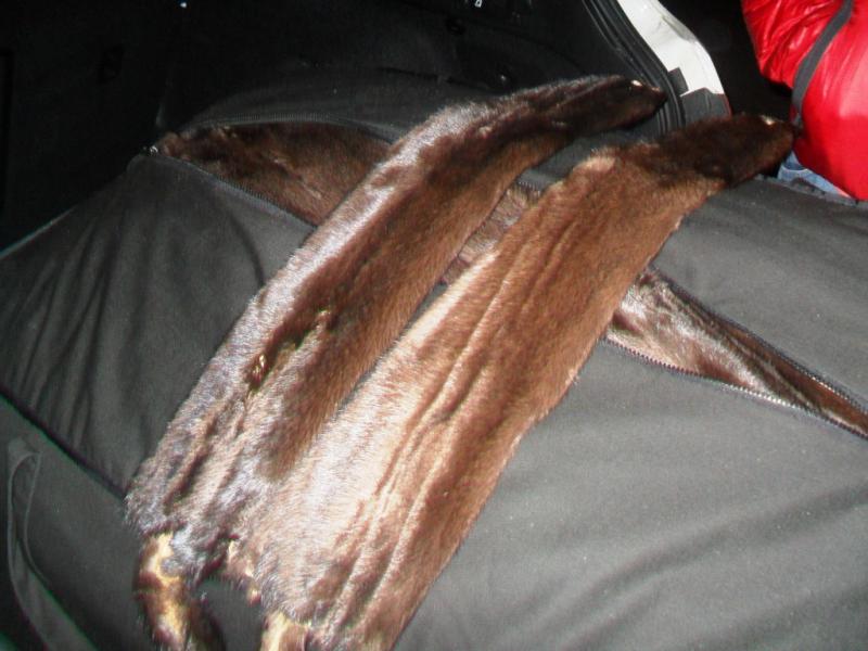 Відтак, у багажному відсіку та задньому сидінні автомобіля митники виявили дві сумки з необробленими шкурками норки. Не внесені до митної декларації 700 штук хутрових шкурок коричневого та білого кольору вагою 116 кг підлягають сплаті митних платежів.