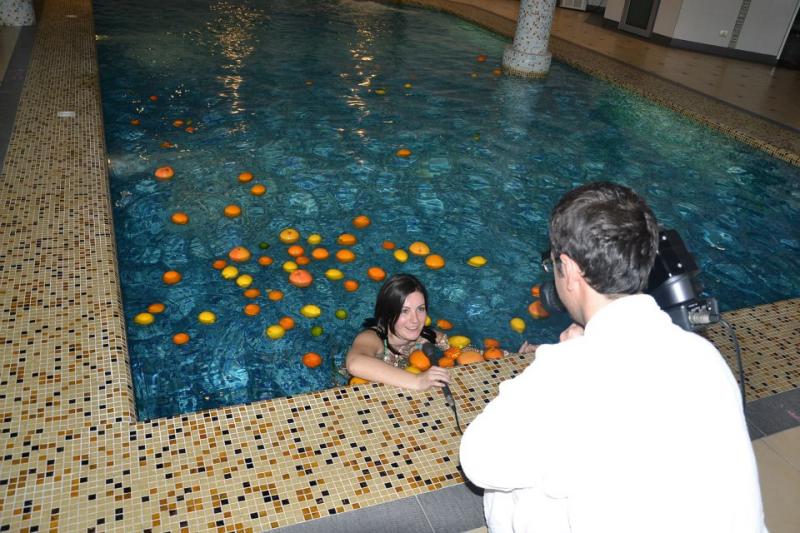 Щодо цитрусової купелі, то йдеться про басейн, наповнений апельсинами та лимонами. Вони здійснюють мікропілінг шкіри, а також віддають у воду цілющий вітамін С.