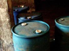 Під час огляду оперативники виявили двадцять дві бочки, наповнені спиртом, ємністю 200 літрів кожна.