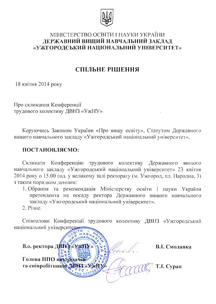 23 квітня в УжНУ буде офіційний ректор (ДОКУМЕНТ)