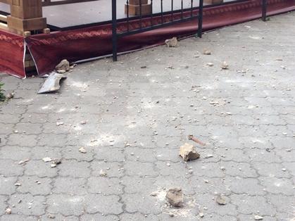 У центрі Ужгорода вітер зносить дах будівлі, штукатурка падає людям на голову (ФОТО)
