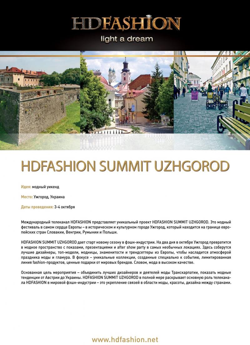 Міжнародний телеканал "HDFASHION" 3-4 жовтня представляє унікальний проект HDFASHION SUMMIT UZHGOROD. Два дні Ужгород перетвориться на модний простір із показами, презентаціями і after show party у найнезвичніших локаціях.