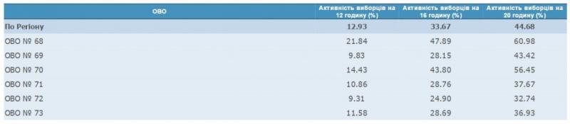 Станом на 20.00 в Закарпатті проголосувало 44,68% виборців. Найактивніше голосувала Ужгородщина та гірські райони.