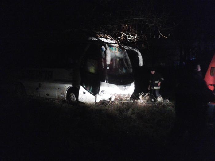 За попередніми даними, водій автобуса «Yutong» не вправся з керуванням та з’їхав у кювет. На момент пригоди в транспортному засобі знаходилось 11 пасажирів та водій.