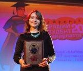 А от інтрига із визначенням кращого студента трималася до останнього голосу журі. По два «за» отримали Віталій Горват, Марія Туряниця та Надія Микулець… І вирішальний голос «студентський мер» Ольга Гатнер віддала Марії. Тож, у 2014-му «Кращим студентом» стала Марія Туряниця. Кожен учасник отримав спеціальні дипломи та призи від спонсорів. За перемогу студентка отримала новенький класний планшет від «Дастору». Юрій Бедей = голова Студентської Ради Закарпаття = від себе вручив Віталію Горвату… бабочку-краватку.