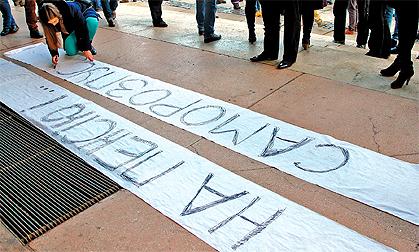 Активісти висловили свої побажання на вході до Ужгородської мерії... 28.11.2014 14:40 РАТУША