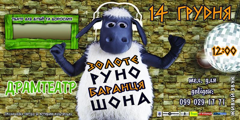 14 грудня, о 12.00, у Закарпатському облмуздрамтеатрі покажуть дитячі виставу-пародію "Барашка Шон".