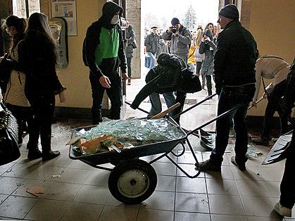 Якого захоплення? Ну майте совість. Двері були відчинені і треба було спокійно заходити а не ламати все підряд. А скажіть чого вікна трощили,там же решітки?Теж хотіли заходити. Ремонт за рахунок йолопів,які пошкодили це майно