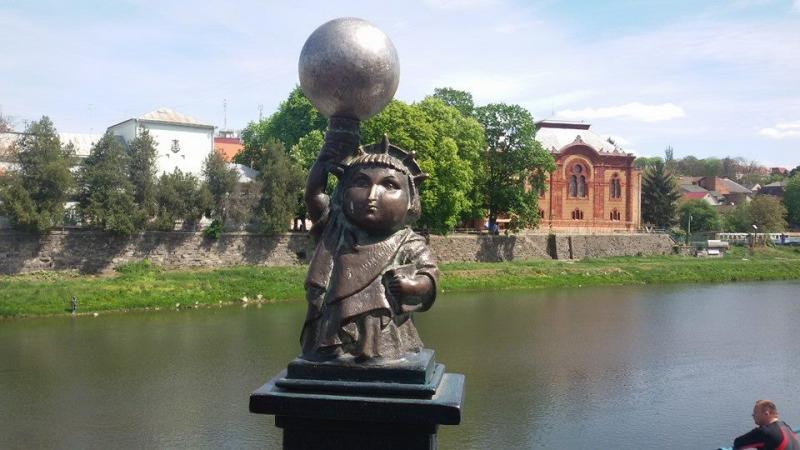 Знаменита ужгородська міні-скульптурка "Свободка" від сьогодні має петанківську кулю. Це ви бачите на фото :)