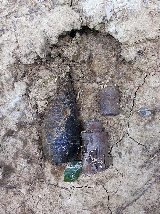 Місцевий мешканець, копаючи стічну канаву на власному обійсті, натрапив одразу на три підозрілі металічні предмети. О 13:45 він зателефонував до служби порятунку «101».