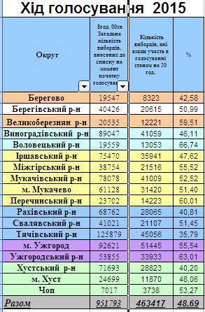 Перші підсумки виборів по Закарпаттю (ТАБЛИЦЯ)