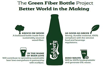 Carlsberg Group ініціювала трирічний проект спільно з компанією EcoXpac, яка спеціалізується на розробці та виробництві екологічної упаковки, а також у співпраці з Інноваційним фондом Данії та Датським технічним університетом з метою створення біорозкладної пляшки з екологічного деревного волокна. Інноваційна упаковка буде відома як «Green Fiber Bottle» (в перекладі з англ. ─ пляшка із «зеленого» волокна).