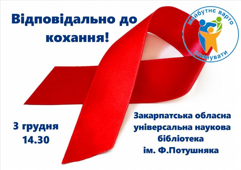 До всесвітнього дня боротьби зі СНІДом 3 грудня о 14.30, в Закарпатській обласній універсальній науковій бібліотеці ім. Ф. Потушняка розкажуть про захворювання, які передаються статевим шляхом, а також запропонують пройти БЕЗКОШТОВНЕ АНОНІМНЕ тестування на віл-інфекцію.