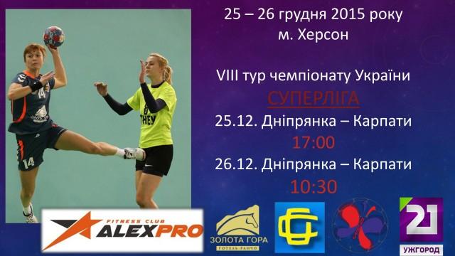 "Карпати" зіграли в останньому турі 2015 року. Суперником ужгородок був ГК "Дніпрянка" з Херсону. В складних поєдинках ужгородська команда перемогла свого суперника. В першому матчі різниця в рахунку становила всього один м"яч. Наступний тур відбудеться у лютому 2016 року.