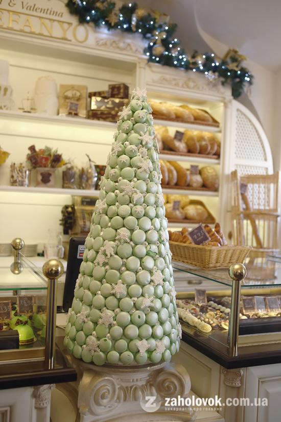 Відомий закарпатський шоколатьє і кондитер Валентин Штефаньо зробив новорічну ялинку з макарунів. близько 400 популярних французьких солодощів пішло на створення святкового деревця.