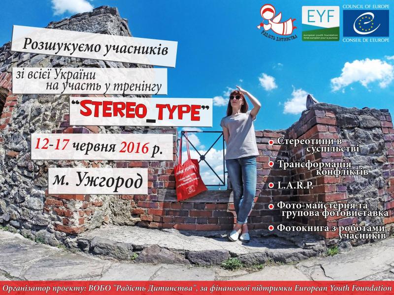 Ми, Волинська обласна благодійна організація "Радість Дитинства", за сприяння Європейського Молодіжного Фонду (European Youth Foundation Council of Europe) оголошуємо відбір учасників на проект “Stereo_Type”.
