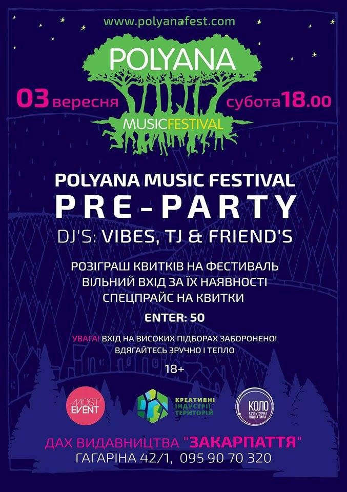 Цієї суботи, 3 вересня останній цього року мистецький захід на даху видавництва «Закарпаття» в Ужгороді. Це буде pre-party до музичного фестивалю «Polyana Music Festival», який стартує 9 вересня під відкритим небом у селі Поляна.