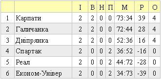 «Економунівер» - «Карпати» - 19:43 (11:20), 15:30 (8:17).