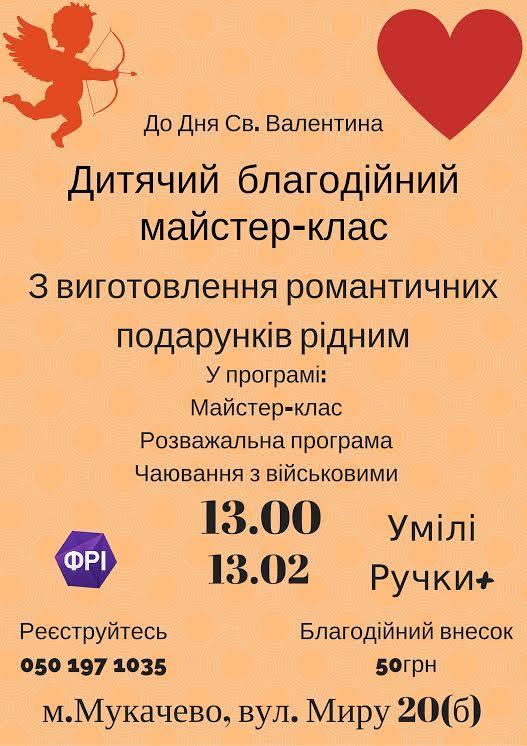 13 лютого в Мукачеві відбудеться дитячий майстер-клас з виготовлення романтичних подарунків до Дня Св.Валентина.