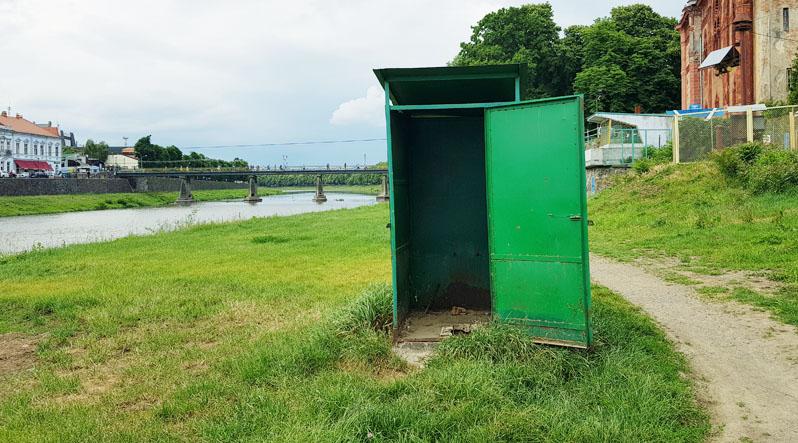 "за 27 років Незалежності в Ужгороді не побудовано та/чи не обладнано жодної громадської вбиральні, якщо не брати до уваги, звичайно, туалет із листового заліза з вигрібною ямою, який розташовано на березі річки Уж, недалеко від малої дитячої залізниці, в зоні паводкового затоплення...", - пише автор, Юрій Ключівський.