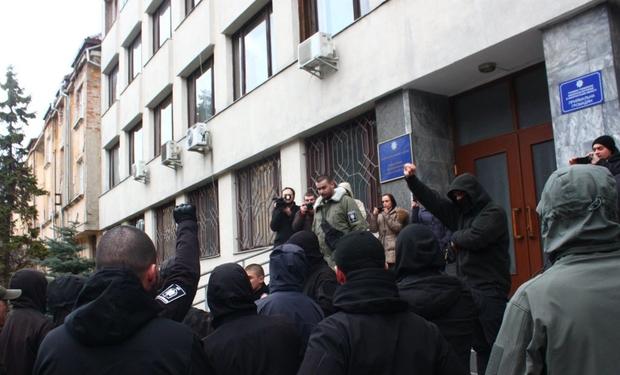 Організація українських націоналістів Карпатська січ влаштувала акцію під стінами УМВС в Закарпатській області.