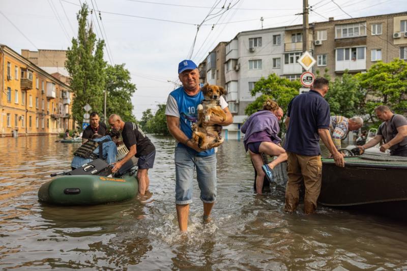 Вода з Каховського водосховища стрімко почала затоплювати міста та села. Затоплено 600 квадратних кілометрів земель Херсонщини та Миколаївщини. Є жертви серед людей. Але ще більше жертв серед тварин. Загинули всі тварини одного із зоопарків, загинули свійські та домашні тварини. Затоплено три національні парки, де знищено унікальні види рослинного та тваринного світу. Збитки лише від затоплення одного Південнодніпровського нацпарку вираховуються в мільярдах гривень.