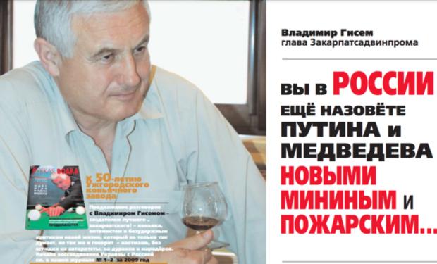 Опубліковано скани з російського журналу з інтерв'ю директора Ужгородського коньячного заводу Володимира Гісема. Гісем в інтерв'ю вихваляє російського диктатора та переконує, що росія вже виграла третю світову війну.