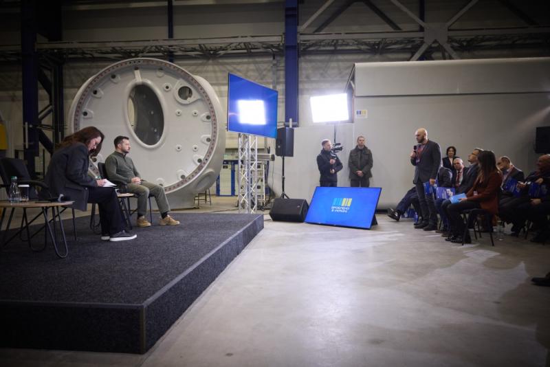Володимир Зеленський також поспілкувався з підприємцями, зокрема з представниками релокованих компаній із Харкова, Мелітополя, Дніпра та Нікополя.