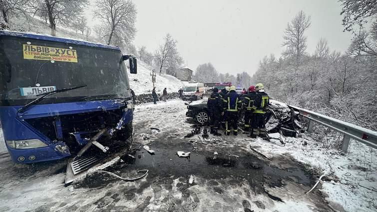 На Хустщині рейсовий автобус врізався у легковик - загинула жінка