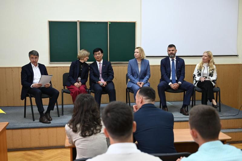 - Разом із заступницею Міністра аграрної політики і продовольства України Оксаною Осьмачко, Надзвичайним і Повноважним Послом Китайської Народної Республіки Ма Шенкунем та в.о. голови Офісу ФАО в Україні Мохаммедом Азукою зустрілися зі студентами трьох факультетів УжНУ: біологічного, історії та міжнародних відносин, а також суспільних наук.