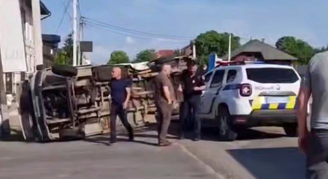 На Тячівщині поліцейське авто зіткнулося з мікроавтобусом, останній перекинувся