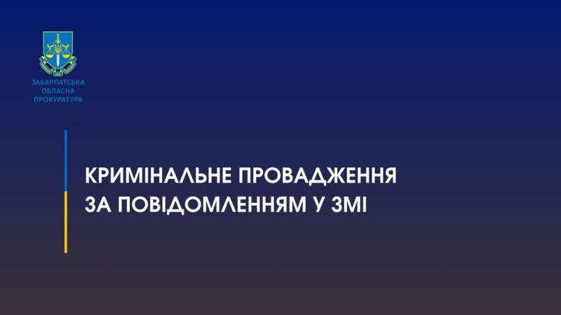 Закарпатською обласною прокуратурою зареєстровано кримінальне провадження за фактом повідомлення редактором місцевого інтернет – видання про його неправомірне затримання.