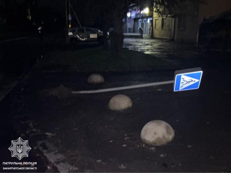 Учора ввечері екіпаж патрульних отримав виклик про ДТП на вулиці Сечені. Прибувши на місце події, поліцейські виявили пошкоджений дорожній знак. Завдяки інформації від небайдужих громадян патрульним стало відомо, що водійка автомобіля Mercedes залишила місце події.