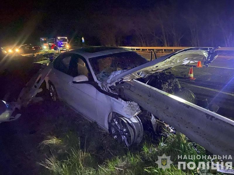 Водій автомобіля БМВ не впорався з керуванням і автомобіль на великій швидкості врізався у відбійник.