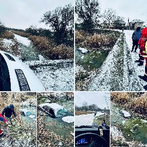 У Берегові автомобіль з’їхав зі слизької дороги і впав у водойму
