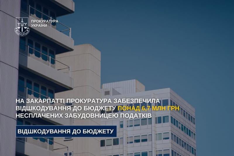 За процесуального керівництва Закарпатської обласної прокуратури забезпечено відшкодування до державного бюджету понад 6,7 млн грн податків, несплачених ужгородською забудовницею.