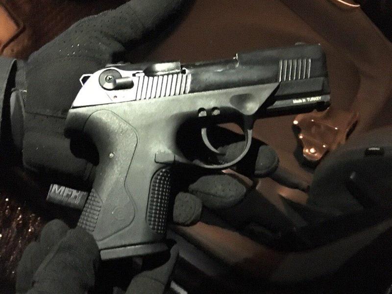 Невдовзі хулігана затримали працівники патрульної поліції на посту в Мукачеві. Там зупинили автомобіль марки «Skоdа Suрerb» іноземної реєстрації, яким керував 42-річний житель Виноградівського району. Під час огляду автомобіля правоохоронці виявили та вилучили травматичний пістолет з набоями. Дозвільні документи на зброю в чоловіка відсутні.