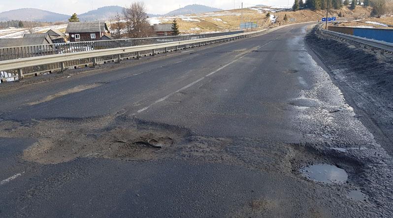 Особливо поганий стан дорожнього покриття на дорогах державного значення «Мукачево – Рогатин» (друга за важливістю транспортна артерія Закарпаття), «Ужгород – Самбір», «Хуст – Долина», «Нижні Ворота – Воловець – Міжгір’я», «Синевир – Синевирська Поляна», «Хуст – Шаяни – Вишково – Буштино».