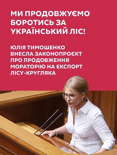 Зусиллями фракції «Батьківщина» парламент зняв з розгляду законопроєкт провладної більшості №4197-д про ринок деревини. Його ухвалення могло призвести до знищення тисяч малих та середніх підприємств в деревообробній галузі та створення монополії чотирьох компаній.