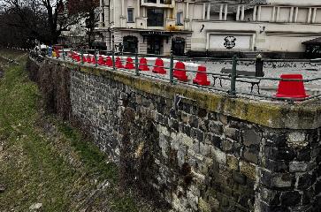 На Театральній площі через ризик обвалу тимчасово відгородили підпірну стінку. Небезпечну ділянку перекрили для безпеки пішоходів.