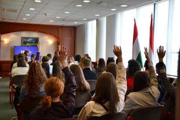 Зрештою, від імені наших студентів, хотіла би висловити вдячність заступнику міністра Мадьор Левенте та голові угорської дипломатичної академії Оршої Почої-Томашіч за підтримку, відкритість та гостинність на протязі всієї навчальної поїздки.