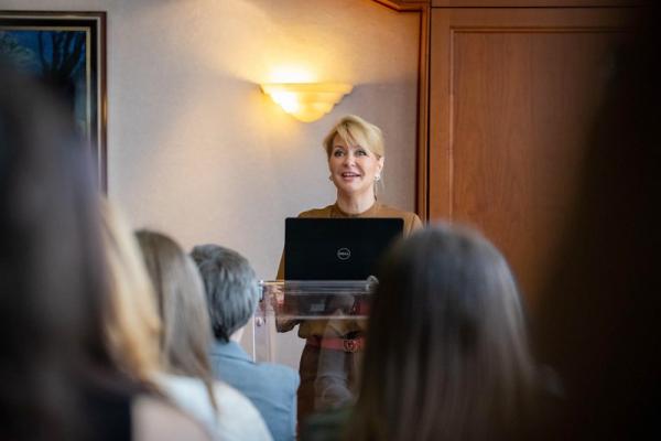 Пані Оршоя Почої-Томашіч радо нас привітала, розповіла про ключові моменти роботи в угорській дипломатичній академії Угорщини, сказала, що ця ініціатива дуже добра для того, щоб студенти могли познайомитися з міжнародною діяльністю дипломатів.
