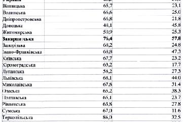 За даними Державної служби статистики Закарпатська область займає перше місце по доступу сільського населення до мережі інтернет.