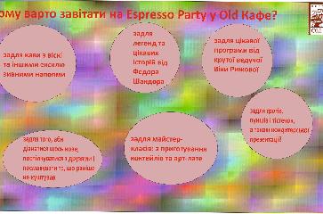 Ужгород славиться чи не найкращою кавою в Україні. Відтак, одна з ужгородських кав’ярень вшанує цей чудо-напій вечіркою під назвою Espresso Party. Мета: показати жителям міста та гостям, що в Ужгороді вміють готувати не лише найкращу каву, а й багато її цікавих різновидів для гурманів. Та не кавою єдиною. Вечірка буда пізнавальною, веселою та передбачає дегустацію найрізноманітнішої смакоти.