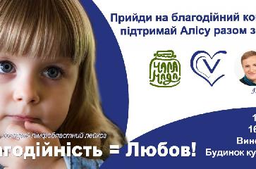 Чаламада, Пилипець і фонд "Виноградів" запрошують на благодійний концерт для маленької Аліси